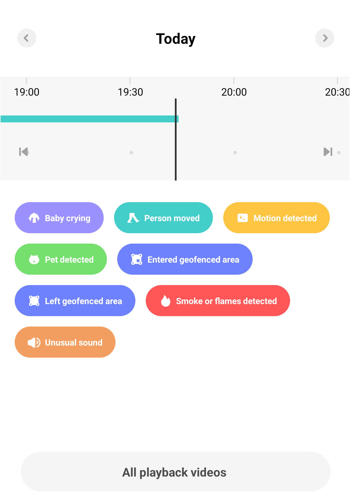 Motion and human detection appear generally accurate in everyday indoor use, with clear labeling inside the timeline.